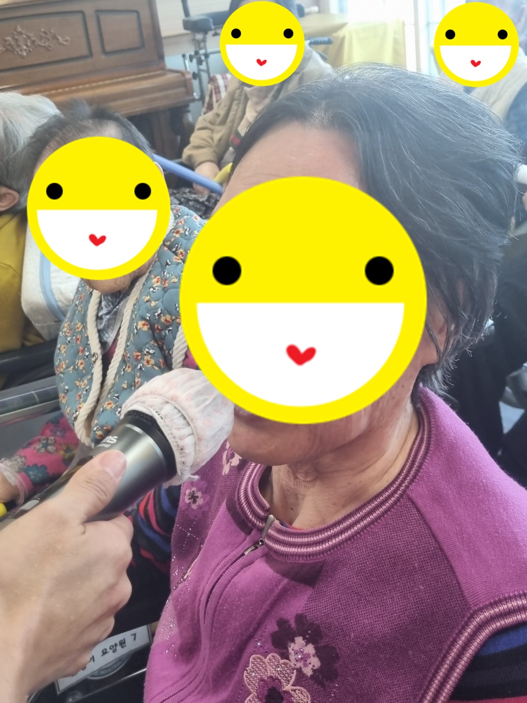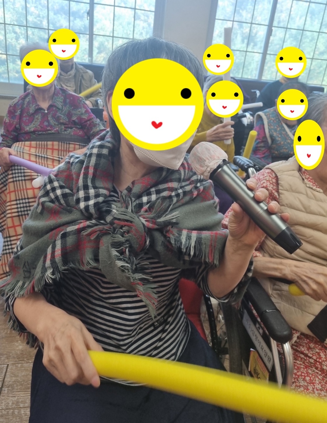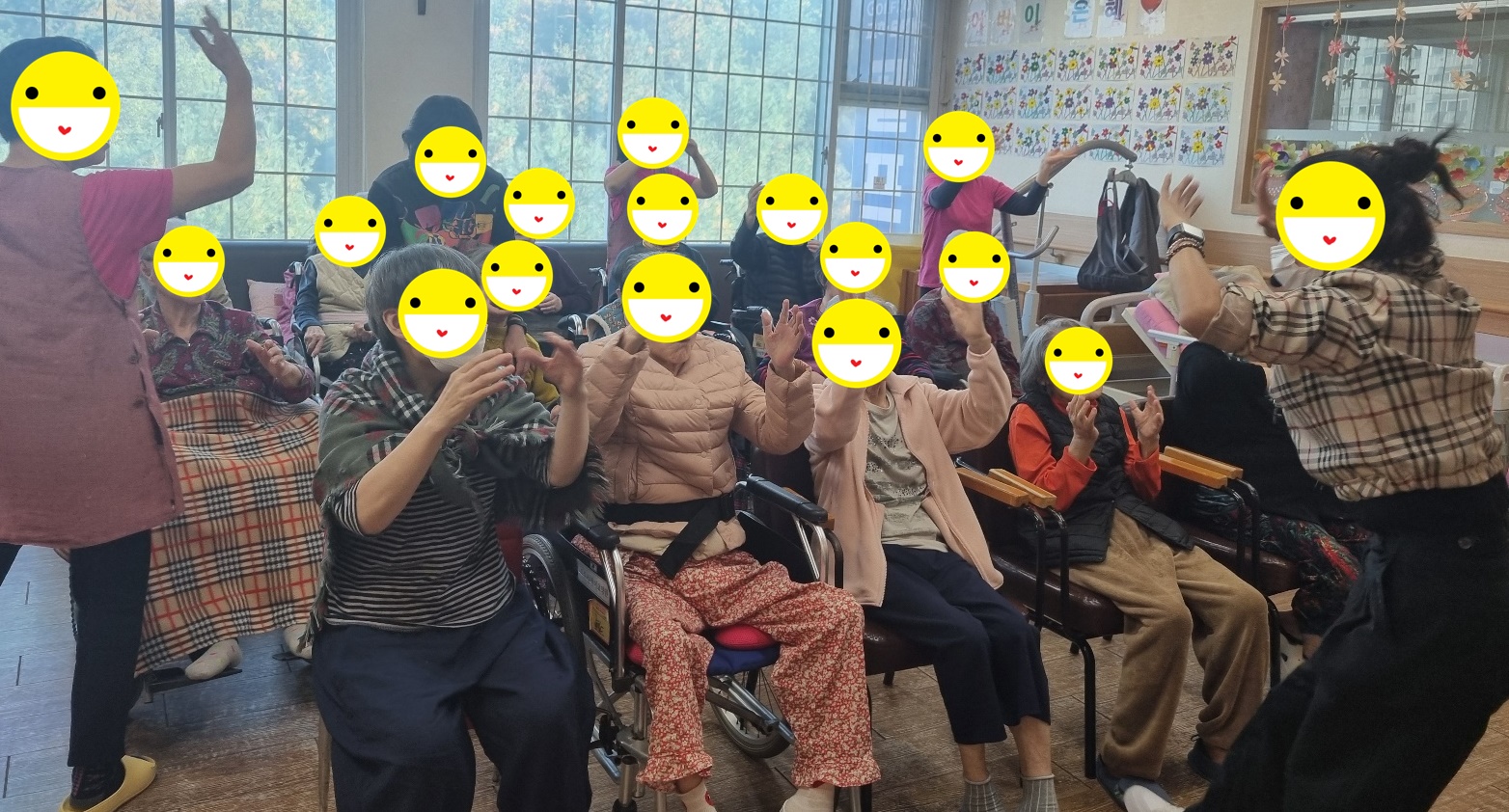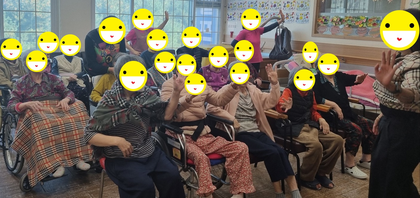 오늘은 보기만 해도 흥겹고 즐거운 레크레이션 선생님이 오시는 날 입니다. 우리 심청이 어르신들도 선생님을 기다리신 듯 반갑게 맞아주십니다. 가벼운 스트레칭과 율동으로 몸을 풀고 '사랑은 아무나 하나' 를 시작으로 사랑의 미로 등 함께 하나가 됩니다. 마지막으로 '홍시' 노래의 가사 한줄 한줄이 오래된 기억을 건드리는 듯 눈을 감고 따라 부르시는 어르신들의 눈가가 촉촉해 지시기도 합니다. 오늘도 각자의 노래를 뽐내시고 따라부르시며 서로의 추억을 함께하는 시간이었습니다. 홍시의 달콤한 향처럼, 우리 심청이 어르신들의 마음에도 따스한 추억과 앞으로의 날들에도 포근한 힘이 되시길 바랍니다. 오늘도 함께 하나가 되어 열창 하시느라 모두 수고 많으셨습니다. 심청이 어르신들 모두 '최고'입니다.