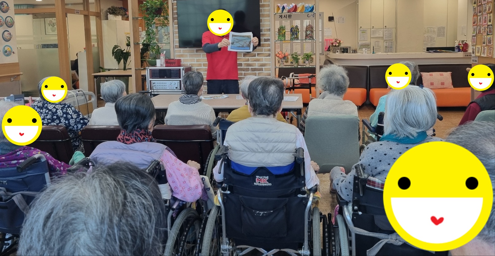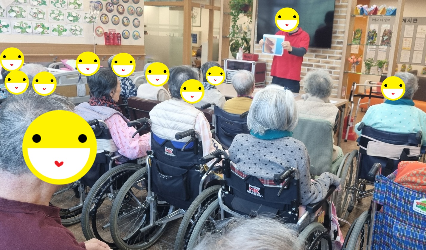 오늘은 어르신들과 함께 '예전에 사용하던 생활용품 맞추기' 인지활동을 진행하였습니다. 절구, 키, 다듬이, 맷돌 동 과거에 자주 사용되던 물건들의 사진을 보며 이름과 용도를 맞추는 시간을 가졌습니다.어르신들의 옛기억을 떠울리며 추억을 이야기 하셨고, 서로 사용하던 방법과 기억을 나누며 즐겁게 참여하였습니다. 신체활동으로는 박수치기(손바닥, 주먹, 손날,손등 )순서로 손의 감각을 자극하며 이어서 팔과 어깨를 부드럽게 마사지하여 근육 긴장을 완화하였습니다. 망치박수와 겨드랑이 마사지, 전신두드리기로 전신의 순환을 돕고 활력을 높입니다. 신체 활동을 통해 혈액순환과 근육이완, 정서적 안정에 긍정적인 효과를 보였으며, 전체적으로 즐겁고 활기찬 시간이 되었습니다.
